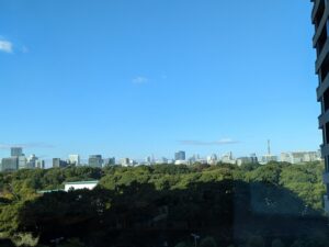 快晴。気持ちよい気温です。皇居の緑も少し黄色がかってきたようです。